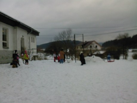 Frmol na školskom dvore. Že nič moc? Mali ste vidieť tie deti za pani učiteľkou a pri vchode.